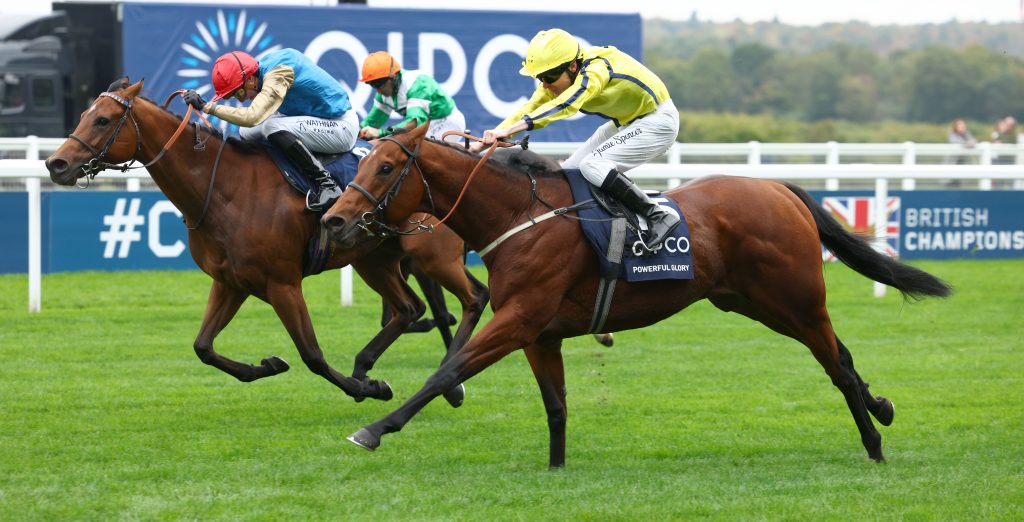 Winner of the G2 Mill Reef Stakes last year, Powerful Glory usurps 150/1 Sussex Stakes scorer Qirat as the longest-priced winner of a Group One race in the UK. The son of Cotai Glory required wind surgery earlier in the year and lined up after finishing last of five in a conditions race at Beverley.