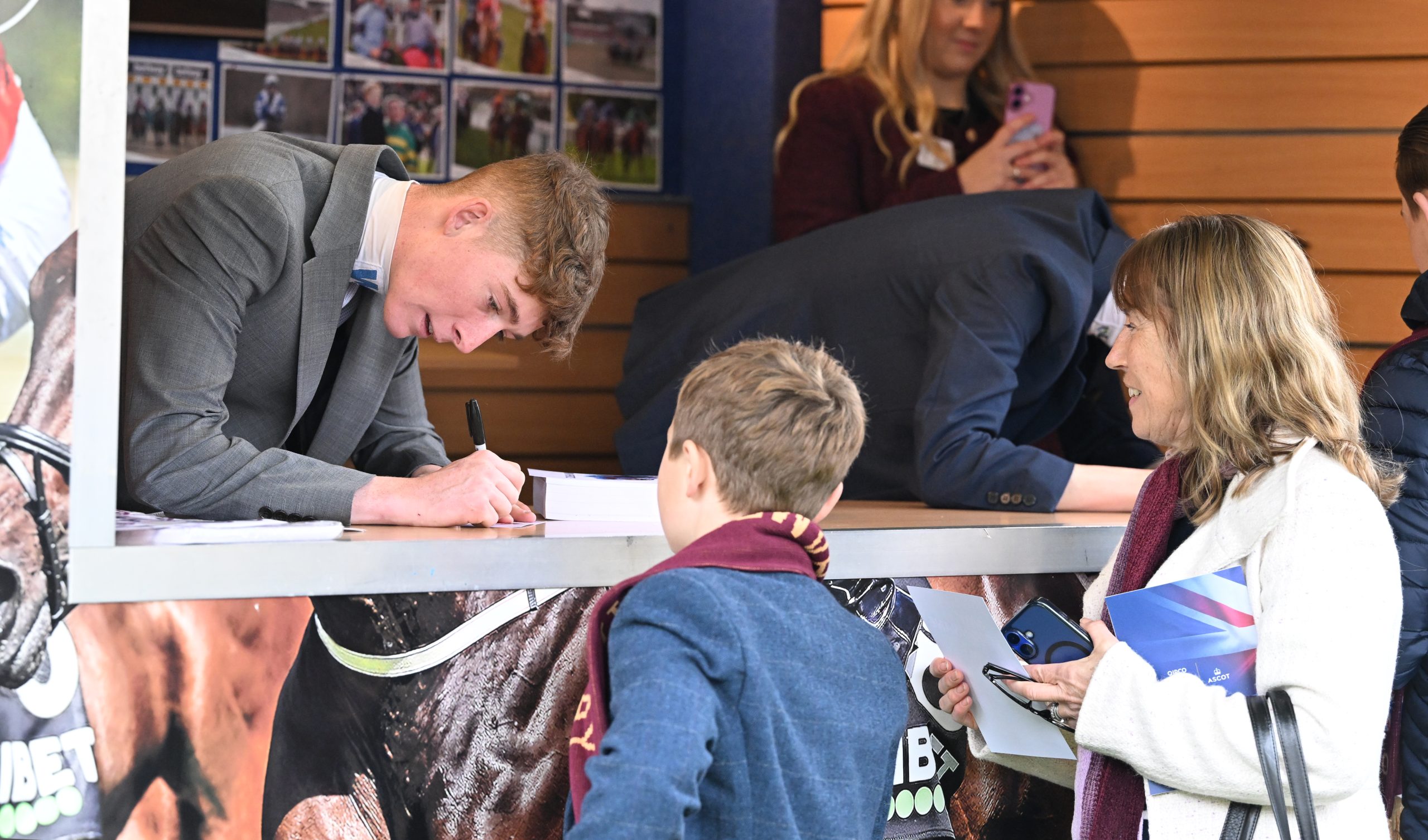 Champion Jockey, Oisin Murphy, meeting young racing fans at the Jockey Hub.